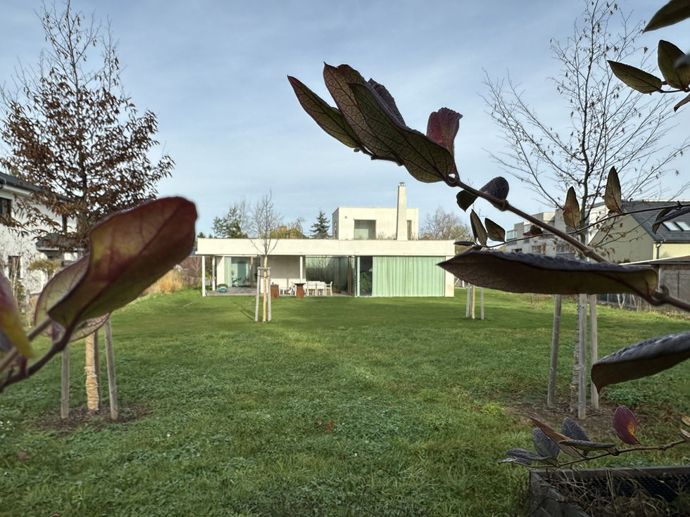 Dům, který je uzavřený do sebe a zároveň otevřený do zeleně. Dům, ze kterého je hodně vidět ven a ne až tolik dovnitř. Dům v zahradě a zahrada v domě. Dům s bazénem, který není ani uvnitř, ani úplně venku.